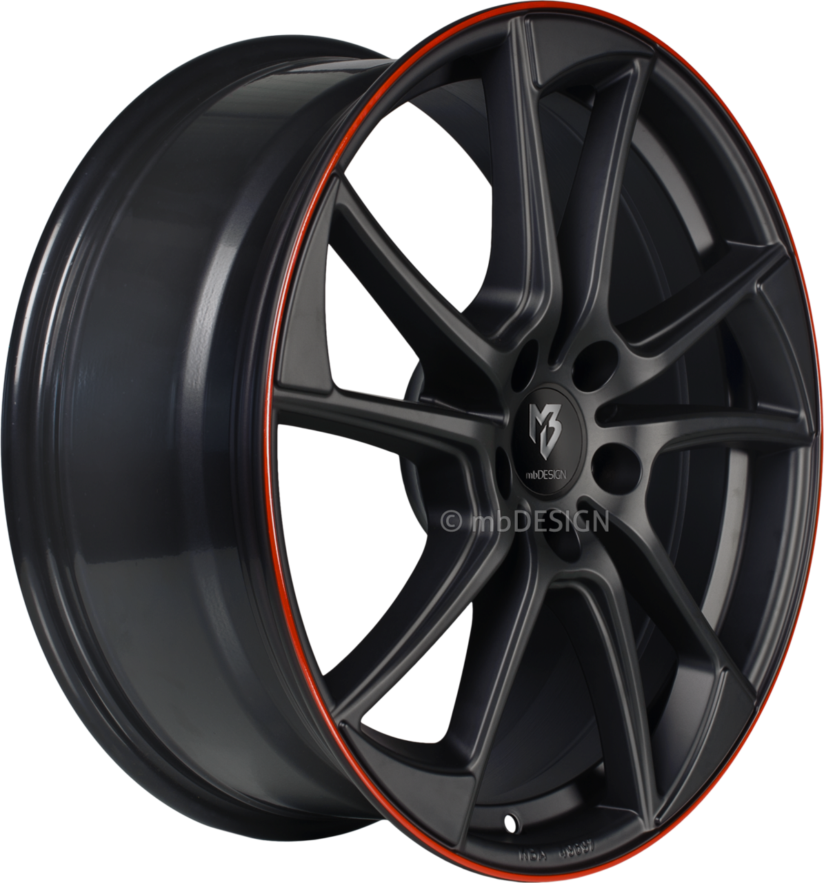 Preview: mbDESIGN mb1 - 7,5x19 ET40 - 5x112 - Schwarz stumpfmatt Horn Rot